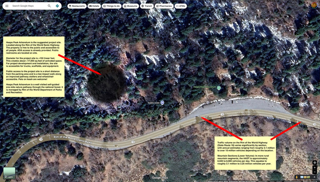 Negative Space is a temporary, site-specific public artwork created for the San Bernardino Mountains in Southern California. The project activates an area of forest into an immersive environment. Drawing shades of darkness into the landscape using a biodegradable, carbon-based pigment made from locally sourced charcoal. The work is not an object to look at, but a place to enter—a space to slow down, recalibrate perception, and spend time without distraction. The material foundation of Negative Space comes directly from the landscape itself. Charcoal is harvested from fallen trees affected by recent wildfires in the region—fires that have profoundly transformed the ecology of nearby mountain communities. Everything used in the project is biodegradable, non-toxic, and temporary. The material ultimately becomes a fertilizer renewing the forest floor.
